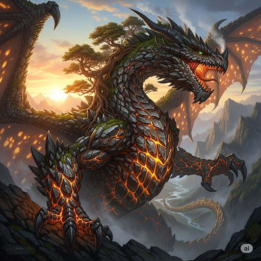 The mythology describes the Obsidian Wyrm as an ancient being, present since the very formation of the mountains themselves. It is believed to slumber deep within the earth, its slow heartbeats causing subtle tremors felt only by the most attuned. When it stirs, it is said that new valleys can be carved and mountains can shift. The First Peoples consider it the guardian of the earth’s stability, the protector of the deep mineral veins and the silent watcher over the slow, geological processes that shape their world.