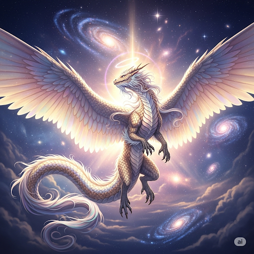 The mythology of the Celestial Lumina describes it as an emanation of pure goodness and compassion, a guardian of spiritual balance and enlightenment. It is believed to watch over those who seek truth and inner peace, offering silent guidance through moments of doubt and darkness. Unlike earthly dragons with territorial claims, the Lumina’s domain is the boundless sky and the hearts of the virtuous. Its presence is not marked by thunder or fire, but by a profound sense of calm and clarity.